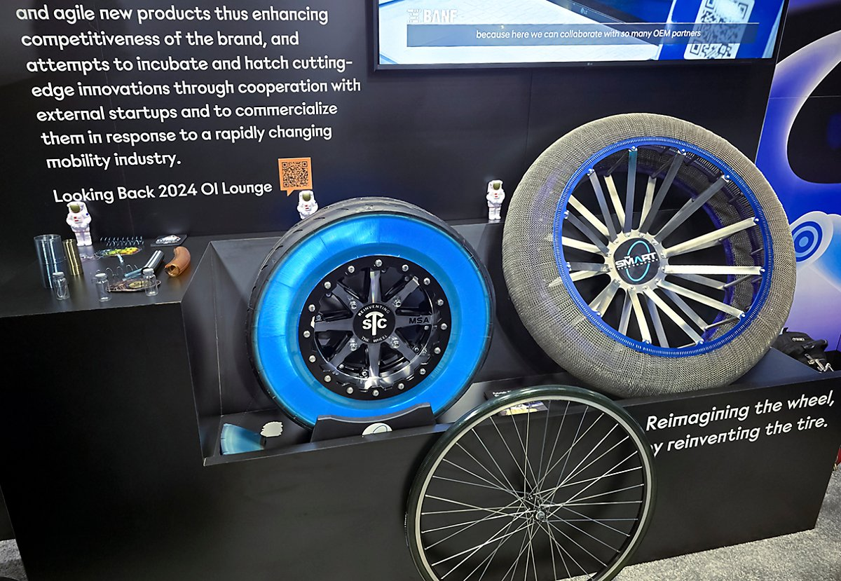 The Smart Tire Company unveiled its airless tires made from shape memory alloys, offering superior durability, resilience, and puncture resistance.